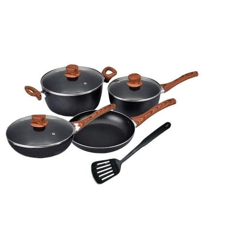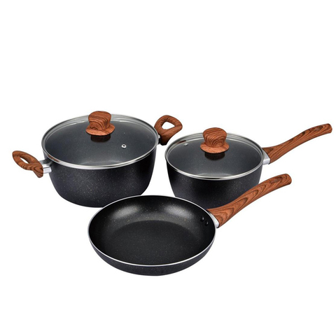 Juego de utensilios de cocina de alta calidad, sartenes antiadherentes de aluminio con recubrimiento de mármol con mango de madera, novedad, 5 uds.