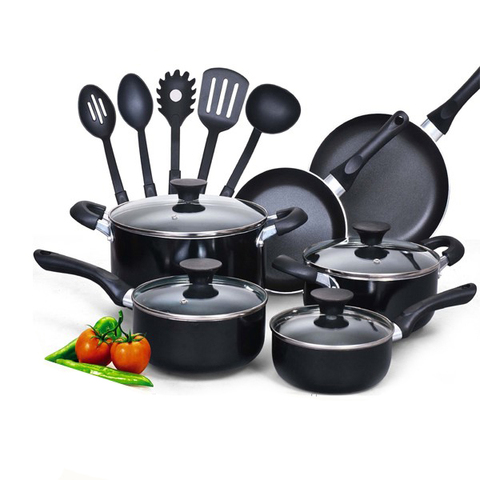 Juego de utensilios de cocina para el hogar, set de utensilios de cocina de aluminio de gran tamaño con fondo de inducción de recubrimiento antiadherente, 15 Uds.