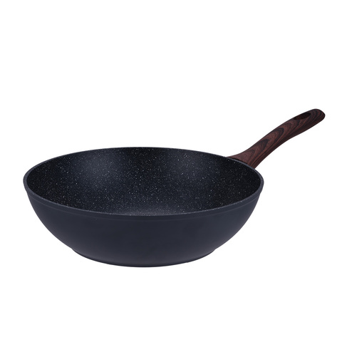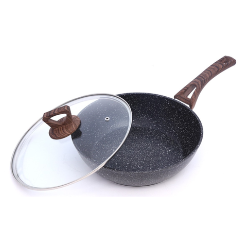 مزورة الألومنيوم النفط أقل طلاء الرخام مقلاة 2020 أفكار جديدة المعكرونة الأرز المقلي منتجات لحوم البقر مقبض ناعم الملمس frypan