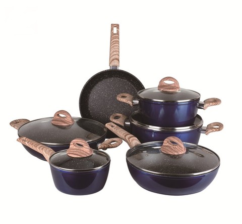 مع الحث أسفل خشبية نقل مقبض تنافسية مجموعات المطبخ أطقم لتجهيزات المطابخ مزورة الألومنيوم طقم أواني طهي غير لاصقة