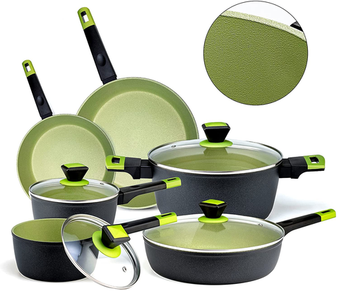 طقم 10 من الألومنيوم المطروق عرض ساخن متعدد الوظائف من السيراميك مع قاع حثي